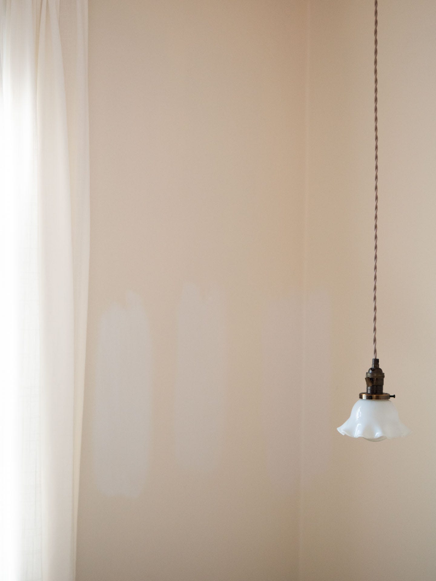 For this apartment, I bought sample pots of Benjamin Moore’s Simply White, Chantilly Lace, and White Dove. (All Benjamin Moore because it’s what’s available within walking distance and because I was already getting decision paralysis and really didn’t need more noise added to the situation.) Chantilly Lace, which was very ardently recommended by many friends, both real and imagined, felt too stark and too blue. A bunch of reviews also indicated that it didn’t cover well and I do not need to be out here painting extra coats of paint. Simply White, which I loved in a past apartment, felt nearly as yellow as the existing color in this one, while White Dove, which we ultimately chose, felt fresh and warm without going golden.